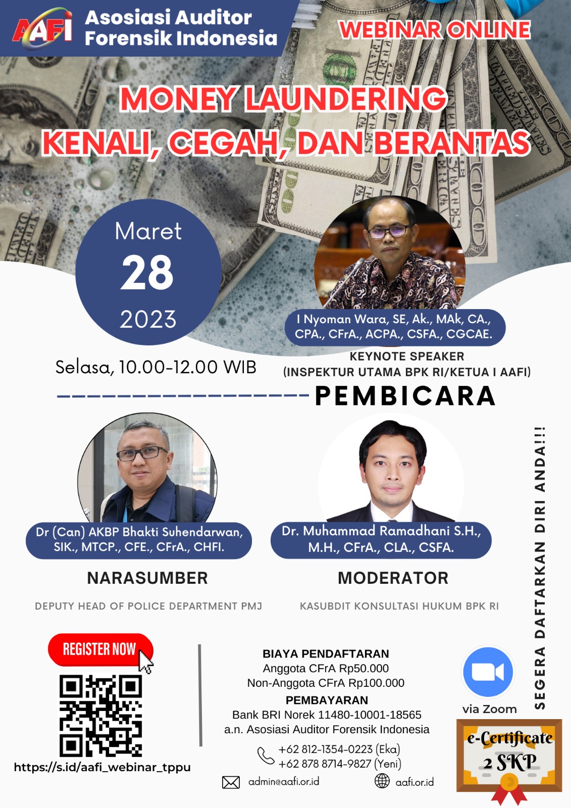 Asosiasi Forensik Auditor Indonesia (AAFI SUMBO) mengundang Bapak/Ibu dalam Webinar Online dengan Tema MONEY LAUNDERING, KENALI, CEGAH, DAN BERANTAS